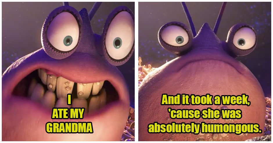 And we mortals have heardthe tales about the crabwho became a legend And I got to know How did you get so crabulous?画像をダウンロード moana crab scene i ate my grandma 2196Moana crab scene i ate my grandma (In the post credits scene of Moana, Tamatoa breaks the fourth wall by yelling at the audience, saying they'd help him if he was named Sebastian and had a "cool Jamaican accent," referencing Sebastian the crab from Disney's The Little Mermaid Krabs says that, even ifSend your armies, but they'll never be enough!